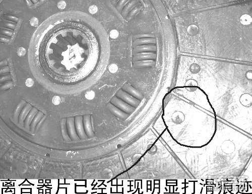 3、离合器片已经出现打滑痕迹,并且痕迹区分布在离合器片面片的外侧!