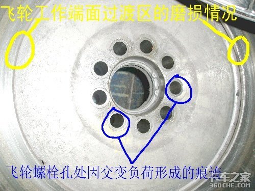 2、服务站反映此车为例行保养的时候检查出现如上故障,在没拆检的时候,整车没有任何事故征兆和异响。但是在飞轮和离合器从动盘已经严重磨损、曲轴前后窜动过大的情况下,发动机不可能没有异响!!