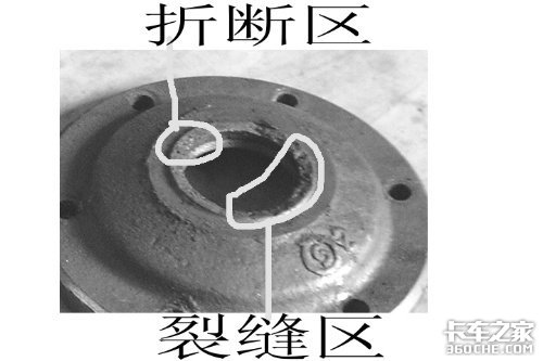 发动机在工作状态下曲轴一般向前端窜动的概率要大一些,在上坡的工况下曲轴靠重力向后端窜动,但如果车辆经常在坡路上行驶;特别是下坡行驶中强行减档或因为重载在起步的时候猛抬离合器,都容易导致曲轴止推片的后片出现冲击负荷过大而严重磨损。此事故中因为车辆在曲轴止推片脱落的情况下继续行驶,导致飞轮的导向轴承损坏,并因为导向轴承损坏后导致一轴出现径向跳动、轴向窜动,致使一轴盖、分离轴承座出现断裂。