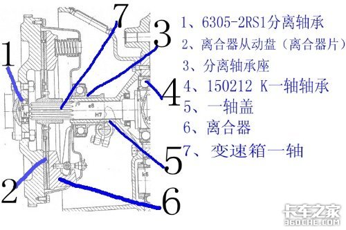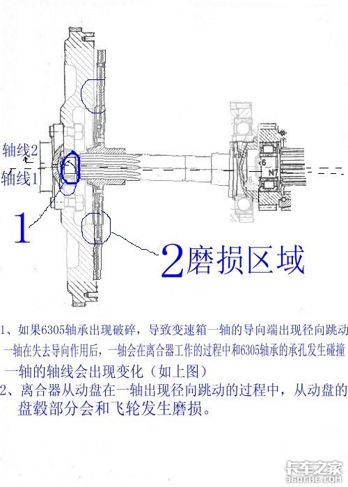 3、导向轴承破损后,一轴盖和分离轴承相继损坏;离合器片已经不能正常分离,换挡时不可能顺利。此车怎么能正常运行呢?