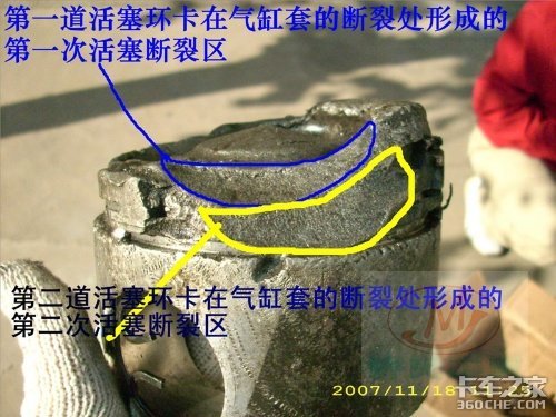 此发动机破损的气缸套存在众多疑点: