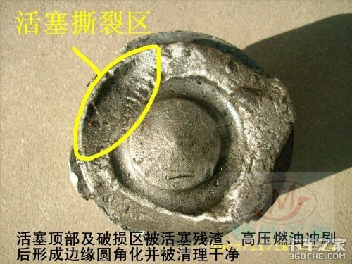因为只是单缸出现的事故,所以不怀疑整车的供油正时出现问题,造成此活塞断裂的主要原因有可能是: