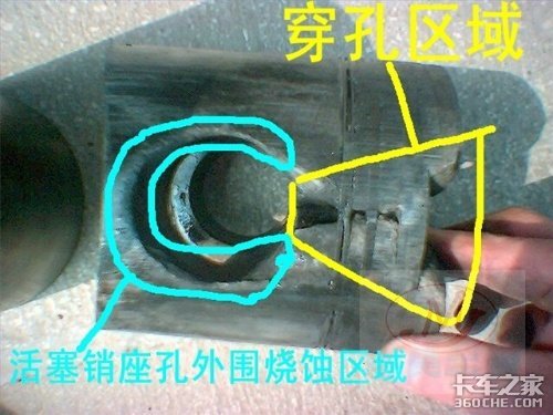 此发动机出现活塞烧穿现象的根本原因就是因为发动机在维修后调校过程中出现失误,导致缸内频繁出现爆燃现象,导致从喷油器喷出的雾化柴油被点燃形成火柱,使活塞顶部燃烧室内局部烧损;司机没有及时发现排烟异常而继续行驶导致!