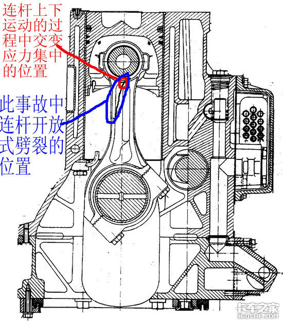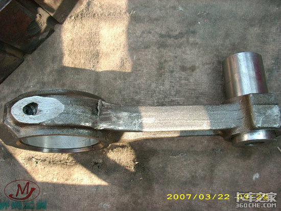 在询问车主后得知,此台发动机因发动机抱瓦,刚大修完4天,在磨合期内发生捣缸事故。发生断裂的连杆为此次发动机维修中更换的连杆。