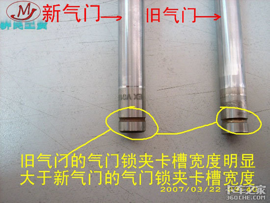 4、将取出的气门和新气门进行对比(德国TRW):