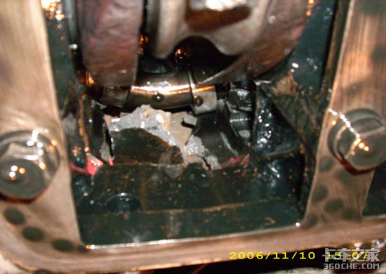 此事故在排除发动机曲轴抱瓦、活塞发生拉缸导致发动机捣缸的因素后;我公司经过讨论分析,为用户在使用了不符合WD615系列发动机技术要求的连杆导致发动机捣缸。