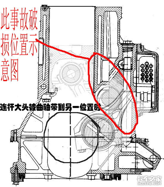 打坏缸体的位置。