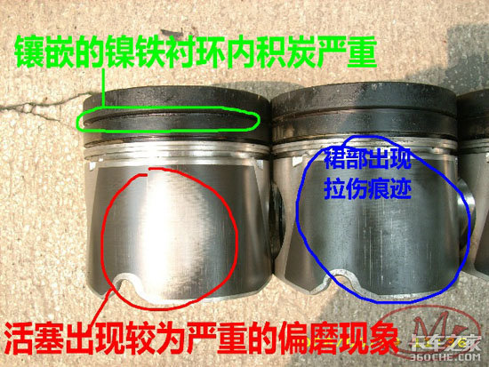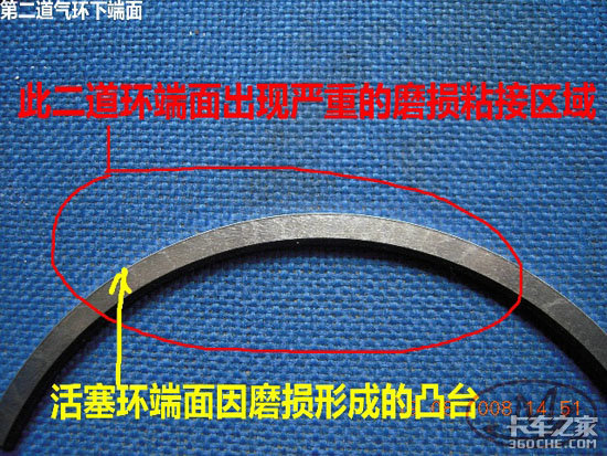 从上面的分析来看,发动机的活塞并没有出现相对的早期损坏,反而三道活塞环均出现不同程度的熔着磨损、腐蚀磨损、磨料磨损;这个发动机出现早期窜油的原因并不是因活塞失效,而是因为维修、使用、保养跟不上导致活塞环出现不正常的早期磨损导致。