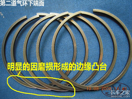 2、由于缸壁的锥度和不圆度,以及燃气作用于环内面的背压等,活塞环作一张一缩的交变运动。