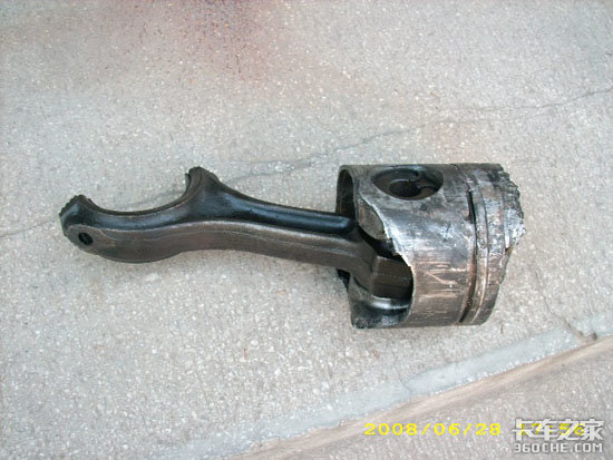 2008年6月28日,我单位受理一起河南商丘WD615发动机大修后捣缸(活塞破损、气缸套粉碎、缸体缸套承孔挤裂)的事故,因车主和维修厂只把受损的部分部件带来,所以我们主要以破损的活塞部分做分析: