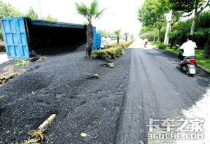 昨日中午12时许,安徽省城包河大道与花园大道交叉口附近发生一起车祸,一辆装有十余吨沥青石子的大货车突然发生侧翻(见图),随即滚烫的沥青石子将一位行人和货车司机掩埋。事故发生后,周围热心群众纷纷施以援手,将两人及时救出,但被埋行人因伤势严重不治身亡。