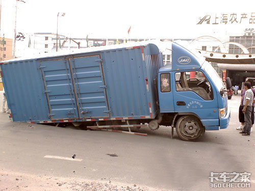 被困货车牌号为为沪B42982,当时车上载重物品约有2吨,在行驶到上海农产品中心批发市场大门外的沪南路上,路面突然发生塌陷被突然下陷的路面所困。卡车司机李先生介绍说:“我开得好好的,他一下子陷下去了,开不动了。”