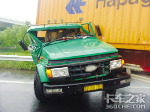 7月22日上午,昆山市陆家镇一高速出口处发生一起车祸,一辆刚从高速公路上下来的集装箱卡车因雨天路滑刹车失控,追尾撞上了前方另一辆集装箱卡车尾部,巨大的撞击造成集装箱卡车车头硬生生地甩到了车身中间,卡在了集装箱车体上动弹不得,俨然成了“变形金刚”,所幸驾驶员无损伤。