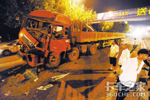 目击者张先生介绍,当时他在自家门前乘凉,忽然听到一声巨响,他顺着声音传来的方向看到,黑龙江路自北向南的车道上解放拖挂车顶到了斯太尔车的后斗上,斯太尔车向前滑行数米后停下,解放拖挂车头部被撞凹进去。