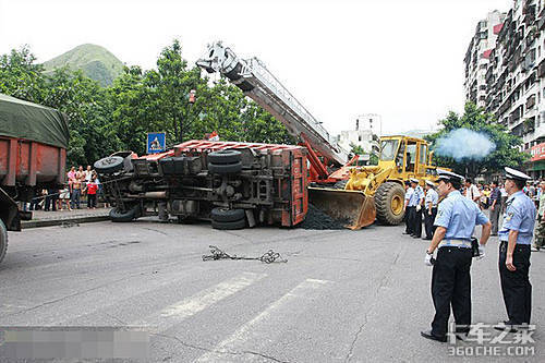 接到报警后,地区出动了大量警力搭救小面包车司机,要想抬出小面包车司机必须先把侧倒的大货车扶正,但是由于货车的过于庞大和大量的煤炭压在小面包上,警方只好联系来了吊车和铲车,先用吊车把大货车吊起来,然后再用铲车把面包上的煤炭铲干净。