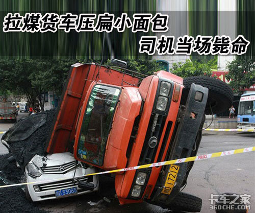 从车祸现场可以看到,一辆拉满煤炭的大货车重重的把一辆小面包压在下面,小面包整体已经被挤压的面目全非。大货车装载的4.9吨煤炭全部摊撒在小面包车的驾驶席左侧,以至于小面包的左侧车身严重变形,司机也被卡在驾驶席没有及时出来而当场死亡。