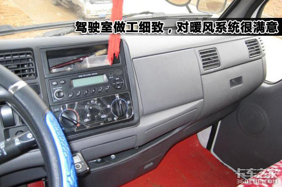 这款车的做工很细致,驾驶室内塑料件也很厚实,行驶中没有中控台乱响的声音,张师傅对空调和暖风系统很满意,冬天行车免去了挨冻的痛苦。