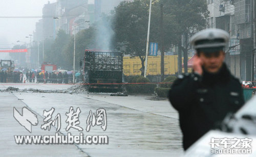 来卡车之家App【卡车之家 原创】从事危险品运输也伴随着高风险,国家道路管理也针对危险品运输进行了严格的规定。但在网上还是能经常看到很多与危险品运输相关的交通事故。昨天,在107国道湖北赤壁市官塘驿镇路段一辆运输电石的半挂车突然发生爆炸,导致两名路人当场身亡,另有一人受伤。
