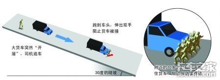 发生这样的事故总是让人感到揪心,在这里需要提醒各位卡车司机,需要在坡上停车时,一定要记住拉伤手刹,确保车停稳了人才能离开。如果坡度较大或者装有货物,最好在车轮下垫块石头或者砖头之类的东西,防止车辆溜坡。