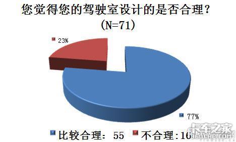 在驾驶室的调查中,不管是驾驶室设计合理性问题,还是卧铺是否宽敞的问题,大部分司机都觉得自己的驾驶室和卧铺设计比较合理。