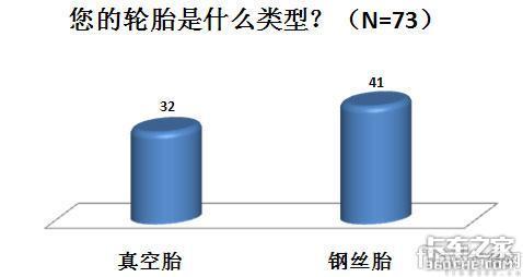 在“您的轮胎是什么类型”这个问题上,参加调查的有73名司机,虽然有41人选择了钢丝胎,32人选择了真空胎,但是记者在调查中发现,大部分正在使用钢丝胎的司机表示,以后换轮胎会考虑使用真空胎,因为真空胎经济耐用,有利于降低车身自重,减少运输成本。