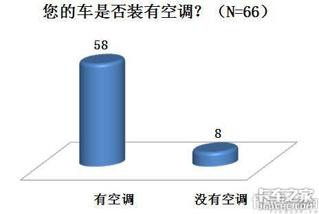 在卡车是否安装空调的调查中,有66辆卡车司机参与了调查,其中有58辆卡车装有空调,占了调查总数的87.87%。记者在调查中发现,虽然司机叫不出空调的品牌,但是司机对原装空调的稳定性,以及智能效果的表现都比较满意。具体数据如图10-1所示。