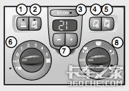 1.辅助加热器 2.再循环 3.经济按钮 4.关闭天窗