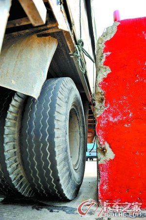 水泥墩已经被擦得“伤痕累累”。