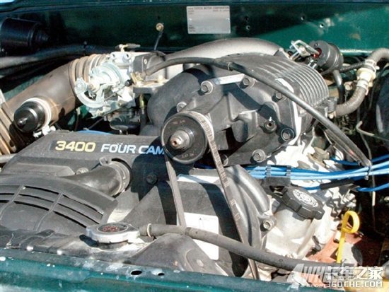 这辆皮卡搭载的原厂发动机是V8版本,它太沉重了,这也是Cary决定更换发动机的主要原因。他在零部件市场上找到了一台1999款Tacoma所搭载的3.4L V6发动机,并将这台发动机与一款TRD(Toyota Racing Development)涡轮增压器一起装到了皮卡上。另外他还在皮卡的货箱上安装了一个备用油箱。