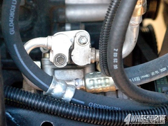 在这辆皮卡上有很多新老零部件结合使用,源自Tacoma的空调压缩器和原厂冷凝器、过滤器结合使用。