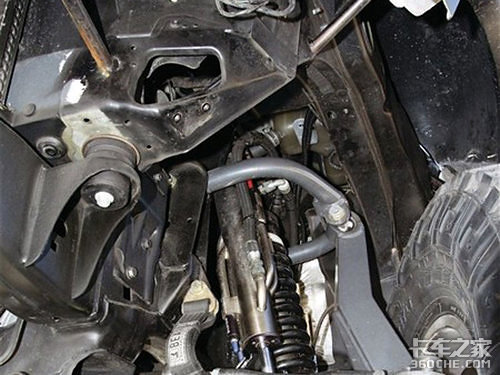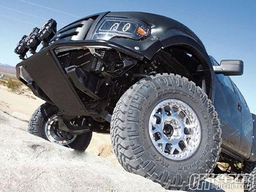底盘升高改装对于越野车改装似乎已经成为了标配,这辆F-150使用了Bilstein的减震系统,粗壮的弹簧和阻尼系统保证了它高强度越野的稳定性。