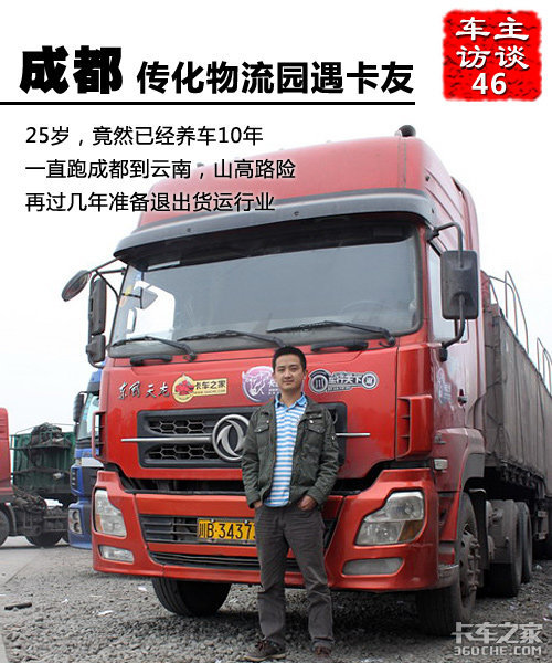 由于另外一台车出车未回,这里我们只来说一下“悠悠少主”少主的东风天龙。这台天龙是09年底全款购买的,连同手续一起办理下来总共花了45万左右。装配dCi340发动机,法士特12档变速箱,最高档速比为0.78,双联动后桥,速比为4.11。挂车为13米仓栏。