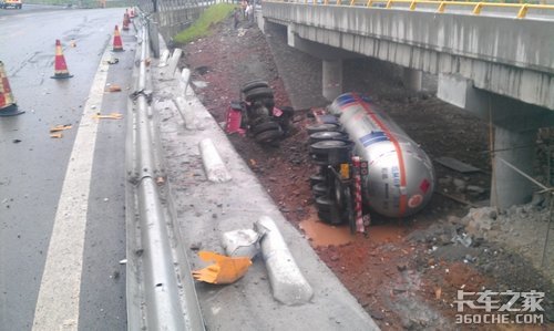 据介绍,因行经转弯处,驾驶员王某采取制动措施不及时且操作不当,方向打的过大,致使车辆碰撞中央护栏后翻车,车辆箱体碾过护栏近50米后翻出高速公路掉入距离路面落差5米左右的高速桥下。