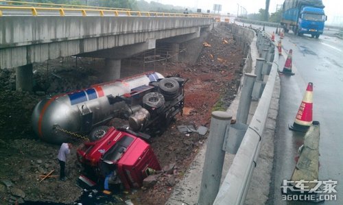 5月13日上午,甬台温高速温州南出口附近,一辆运载易燃易爆气体的重型槽罐车因高速修路,在借道行驶中失去重心坠入5米多高的桥底。当地公安、消防、路政等部门迅速到场救援。