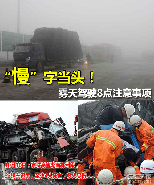 来卡车之家App【卡车之家 原创】2012年10月10日早上6点多,受大雾影响,京珠高速湖南株洲段朱亭服务站附近发生了20余辆车连环相撞,造成至少4人死亡,多人受伤的恶性事故。据报道称,事故发生在距朱亭服务区3公里外。当时一辆挂车和货车发生碰撞,但由于高速上浓雾笼罩,能见度非常的低,后面的车辆来不及避让相继撞上,最终造成22辆汽车连环相撞。