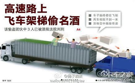 2、惊险作案:疾驰中攀上运酒车,前后协作抛接货物