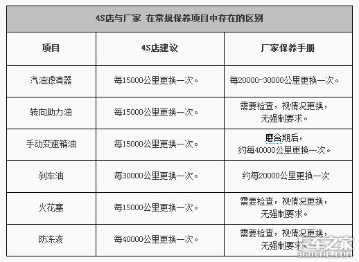 在4S店与官方的保养周期和项目的对比中,我们看到两者间的差异还是比较大的,主要是保养项目方面的差别。下面我们就来看看4S店与官方在常规保养项目中的区别。