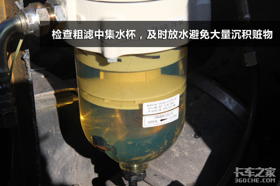 由于车辆在停放长时间后,油箱中柴油沉淀的赃物质会大量沉淀,着车后会全部抽出,并且会经过粗滤,所以要检查粗滤中集水杯,及时放水避免大量沉积。