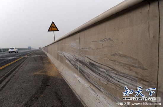 从一个提货单上可以看出,穆某从12月19日在神华宁夏煤业集团煤炭化学工业分公司提货,送货目的地为浙江省余姚市,交警初步判断,这次事故可能发生在穆某将这趟货送到浙江后的返程途中。图为高架桥护栏上留下了大货车多个撞击滑行的痕迹。