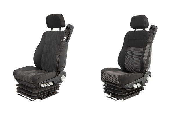 经济版气囊减震座椅。提供最基本的减震、高度调节、以及一级腰靠调整。座椅面料采用普通针织材料制作。