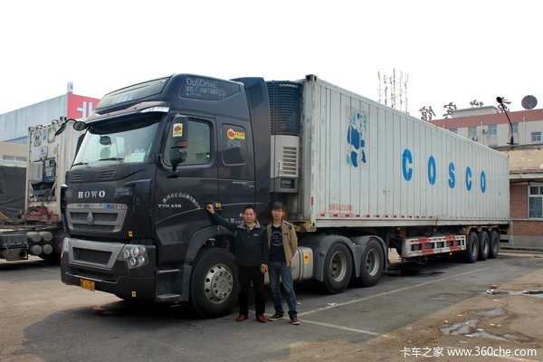 张师傅最早是在河南漯河的物流公司工作,专业运输双汇集团的冷藏和冷冻食品。后来,张师傅自己购车单干,还是从事冷藏车运输。他的上一个车型是340马力的6x2天龙牵引车配二手的海运冷藏集装箱,用着不太满意,遂于2013年换了目前使用的T7H“黑金刚”6x4牵引车。