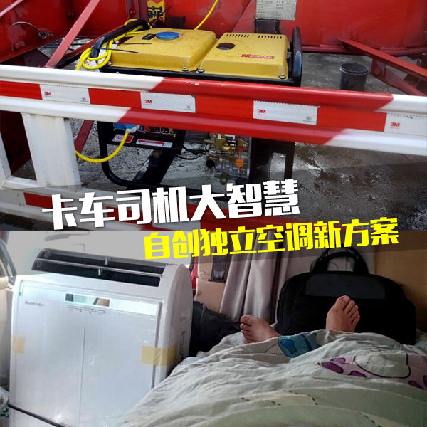 两位大智慧的卡友,利用家用跟移动空调体积小、可移动的的特点,创造了这个独立空调的安装方式。而两位卡友由于运输性质的不同,选择的发电机方式也有所不同。