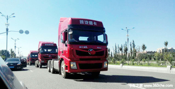 大喜之日,陕汽德龙X3000牵引车组成了迎亲队伍