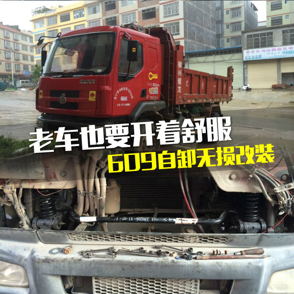 而609高配车型是有4点悬浮的,正好卡友是广西人,在广西那是柳汽的天下,柳汽的一切配件都手到擒来,买上高配609的驾驶室前悬套件找个修理铺就开始突突。原厂配件改装起来也得心应手,大梁和驾驶室的螺栓孔位都是预留的,直接拆掉原来的固定点,把买来的套件装上即可。