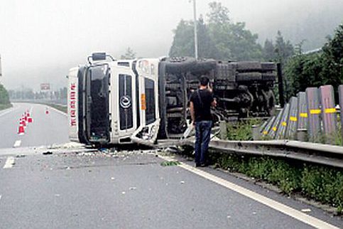 冷藏挂车躲避小狗侧翻 车毁人伤