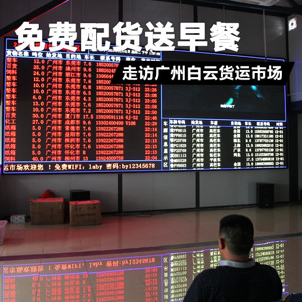 来卡车之家App【卡车之家 原创】12月3日,广州站的小编走访物流园时发现,在广州白云区太和镇的白云货运市场新开了一个配货中心。据现场工作人员介绍,白云货运市场是属于林安集团旗下的一个物流园,这里的货源信息是和林安对接的。林安物流信息交易平台白云服务中心在11月8日刚刚开业,目前处于免费运营状态,早上还有早餐送。随后小编找到了物流园的负责人,他表示配货中心会一直免费下去。