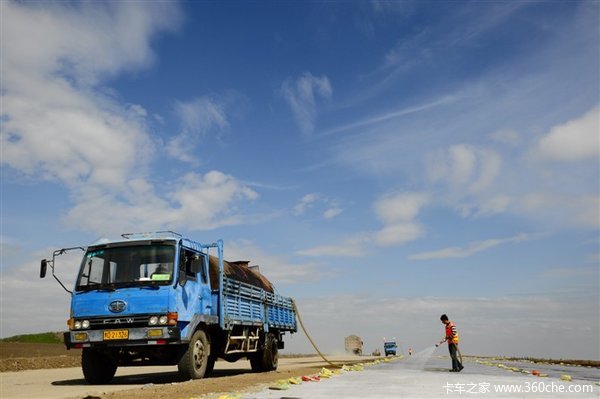 两个多月的水稳养生工作很快就过去了,接下来便是铺筑沥青面层,由于受到摊播机工作半径的限制,很多地方需要人工铺沥青,所以我又从水车上下来,转而开起了拉沥青的翻斗车。
