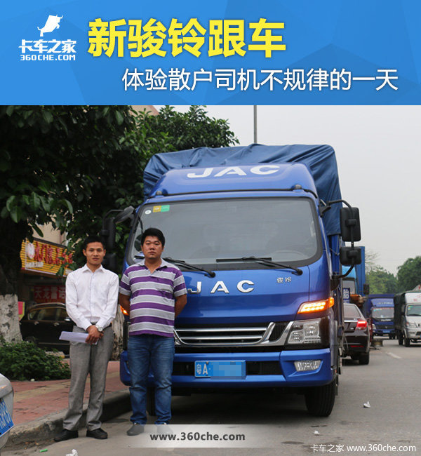 来卡车之家App【卡车之家 原创】新骏铃V6自上市以来,销量增长迅速,颇受用户欢迎。在广州从事物流运输的欧师傅就购入了一辆搭载云内2.5L发动机的新骏铃。卡车之家广州站的编辑有幸对欧师傅的这辆新车进行了跟车报道,下面就来看看广州散户轻卡司机的日常营运生活以及新骏铃在实际使用中的种种表现。