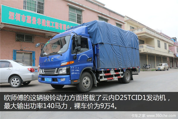 由于之前没有接触过轻卡,欧师傅在买车时,听取了身边老乡的购车经验。他表示,自己有老乡在广州坤厚买过骏铃,各方面都感觉不错,而他在对比完各款骏铃的价格,并听完销售人员的介绍后,最终定下了这辆德威动力的新骏铃。