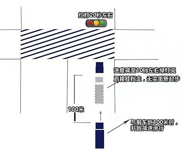 在前方有车等红灯或者是前方红灯的情况下应该提前减速,丢油门,让车辆慢慢滑行,这样既能省油又能节约刹车片,一举两得。